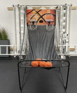 Wer trifft die meisten Körbe? 2 Spieler versuchen gleichzeitig nebeneinander ihr Glück. Ein elektronischer Zähler zählt die Körbe.